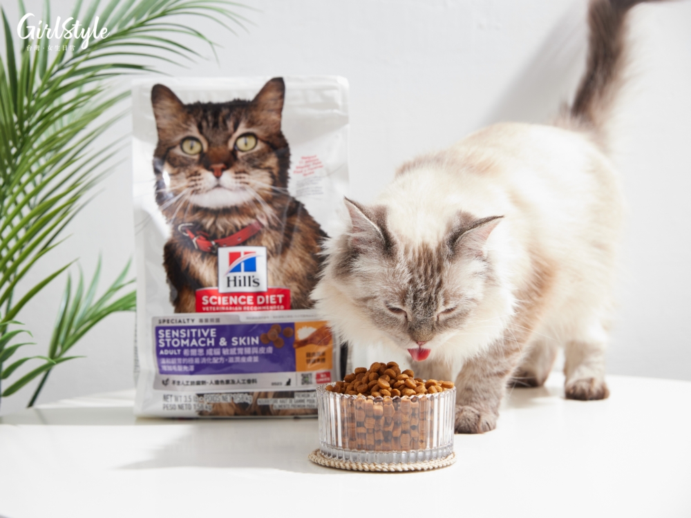 希爾思是這次5款貓糧評比中脂肪比偏高的,但脂肪比與鈉含量皆在AAFCO的規範內,其中一樣含有Omega-3和Omega-6脂肪酸,可以滋潤肌膚及毛髮。希爾思的飼料香氣偏重,所以小編觀察下來貓貓都普遍蠻愛吃的,看看照片中貓貓吃的多津津有味!另外這款是特別針對皮膚、腸胃較敏感的貓貓做調整,內含益生纖維的極易消化配方,除了改善消化方面問題,還可以滋潤皮膚幫助皮毛亮麗。不過要注意,這款貓糧不適用於幼貓、正在懷孕階段的貓媽咪喔!