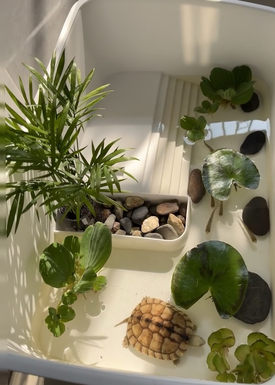 烏龜喜歡在水中游泳和曬太陽~因此,為牠們提供一個專用的游泳區和曬台是非常必要的!游泳區可以讓烏龜自由地在水中遊玩,而曬台則可以讓牠們晒太陽並調整體溫~