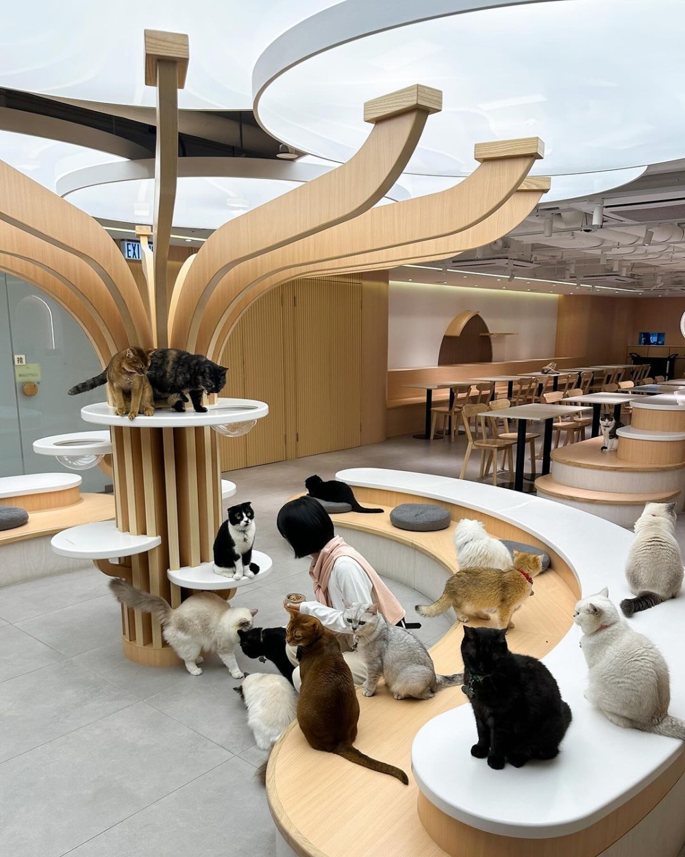 Meowtini為全港首家貓咪餐廳酒吧,為貓奴們打造了一個極致奢華的寵愛天地!這裡有著多達20位迷人的貓主子,牠們優雅地在空間中遊走,等待著來自貓奴們的寵愛與關注~這裡不僅提供高品質的美食,更有著藝術拉花咖啡與時尚調酒,為您的味蕾帶來極致享受!無論是放鬆身心還是追求美食享受,Meowtini都將成為您的心靈慰藉之地~