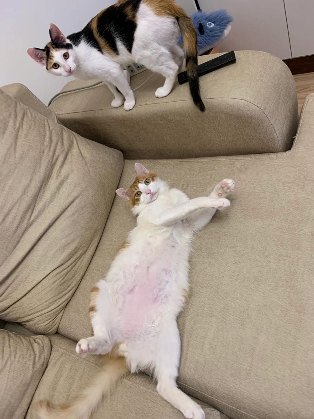 當貓咪展示出牠們的肚皮時,這表示牠們感到非常放鬆和安全!貓咪的肚皮是一個非常敏感的區域,如果你的貓咪允許你摸牠的肚子,那麼這代表牠對你感到非常信任~