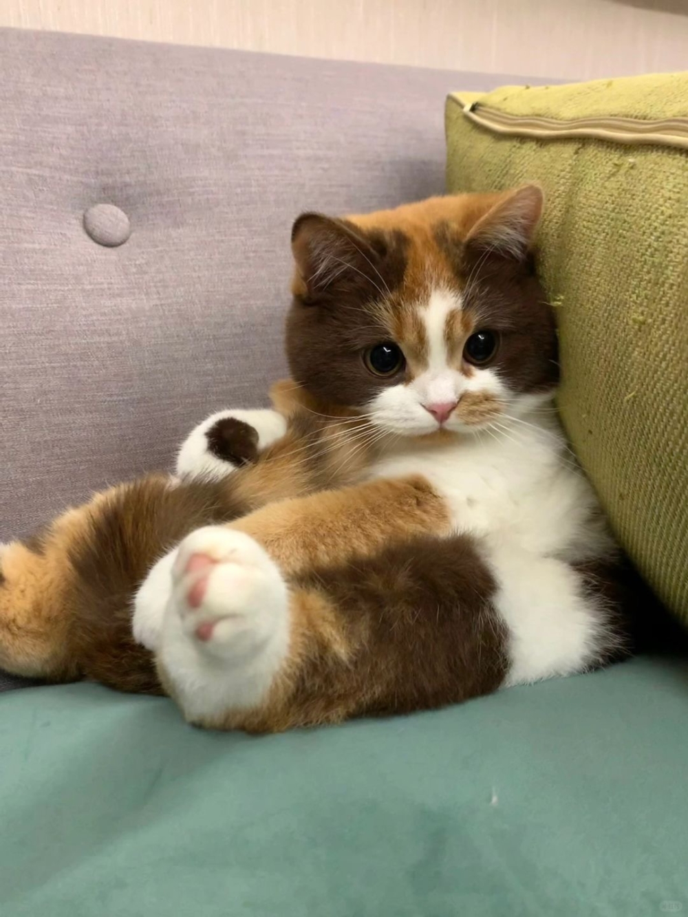 3. 這張照片中的貓咪正在舒服地躺在沙發上,牠完全放鬆地把肚子朝天~