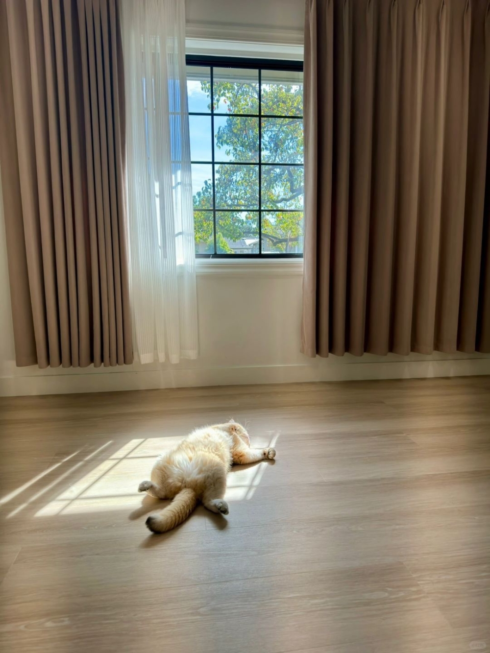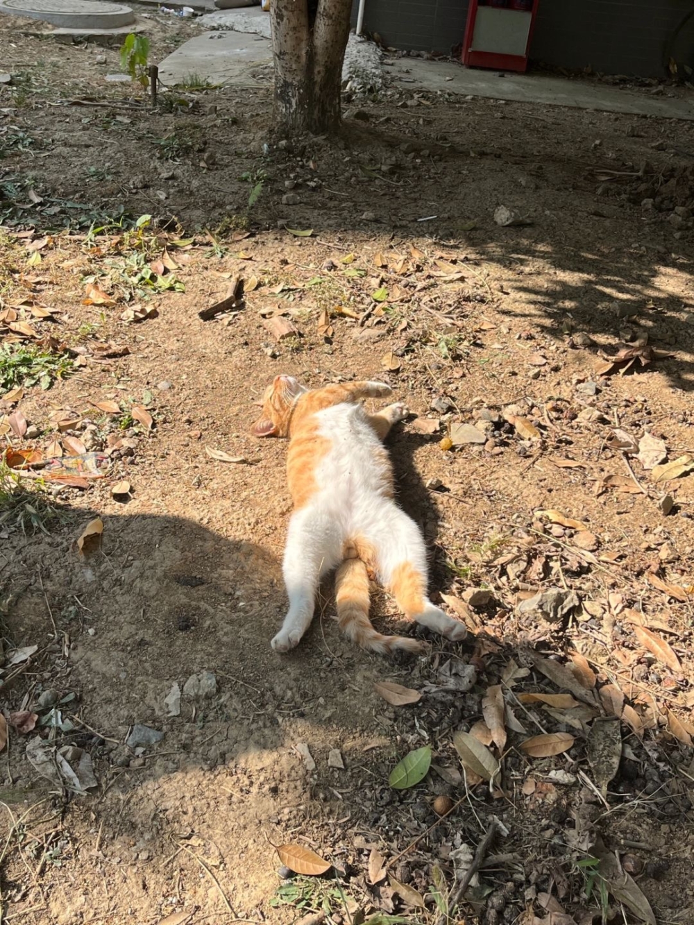 1. 這隻貓咪躺在地上,把全身都擺在了陽光下!牠看起來非常享受這種放鬆的感覺~