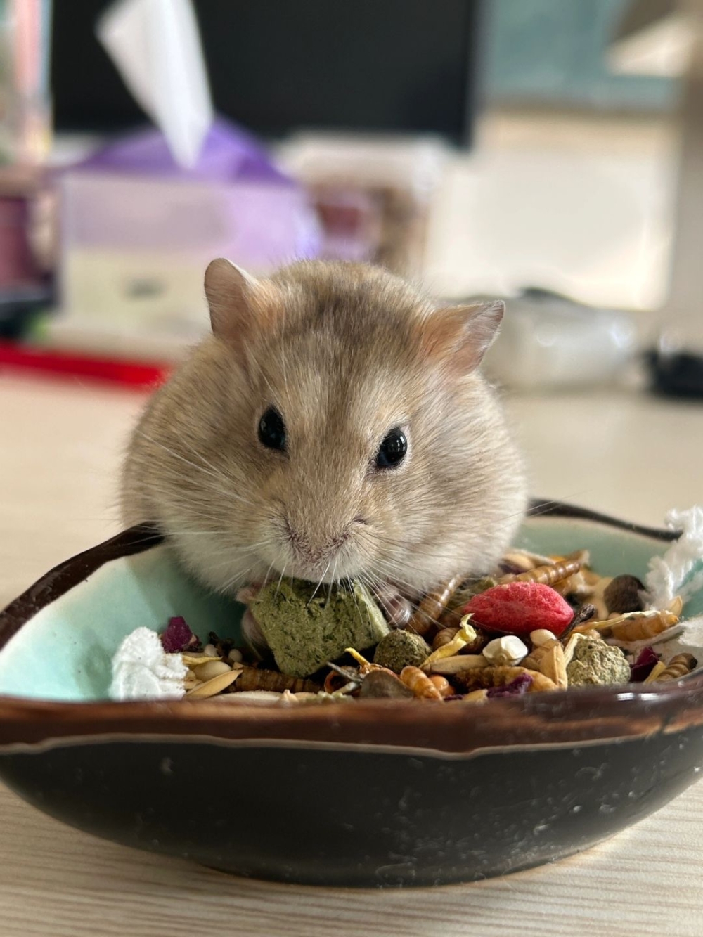 倉鼠的門牙非常銳利,這使得牠們成為了一流的咬嚼高手!牠們喜歡咬食物、木頭、塑料和其他各種物品~這不僅是為了保持牙齒健康,還有助於滿足牠們的探索和咀嚼需求!