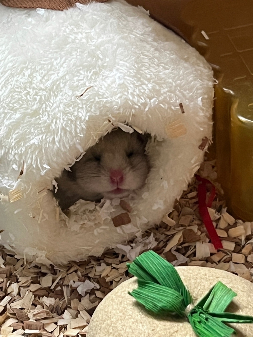 當然,倉鼠也需要休息和睡覺~牠們喜歡在舒適的巢穴或床上卷成一團,享受安靜和放鬆的時光!睡眠對於倉鼠的健康和幸福非常重要,所以讓牠們有足夠的休息時間是至關重要的~
