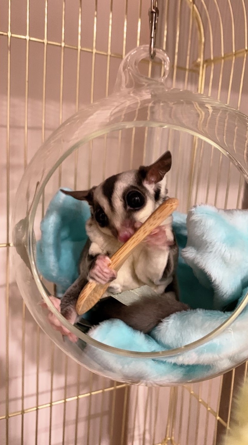 蜜袋鼯是非常社交化的動物,喜歡與人類互動~花些時間與你的蜜袋鼯玩耍,可以加強彼此之間的聯繫!你可以使用一些玩具,如球或追蹤器,來讓牠們保持活躍和快樂~但是,請記住不要過度打擾牠們的休息時間,因為蜜袋鼯是夜行性動物,白天比較容易疲倦!