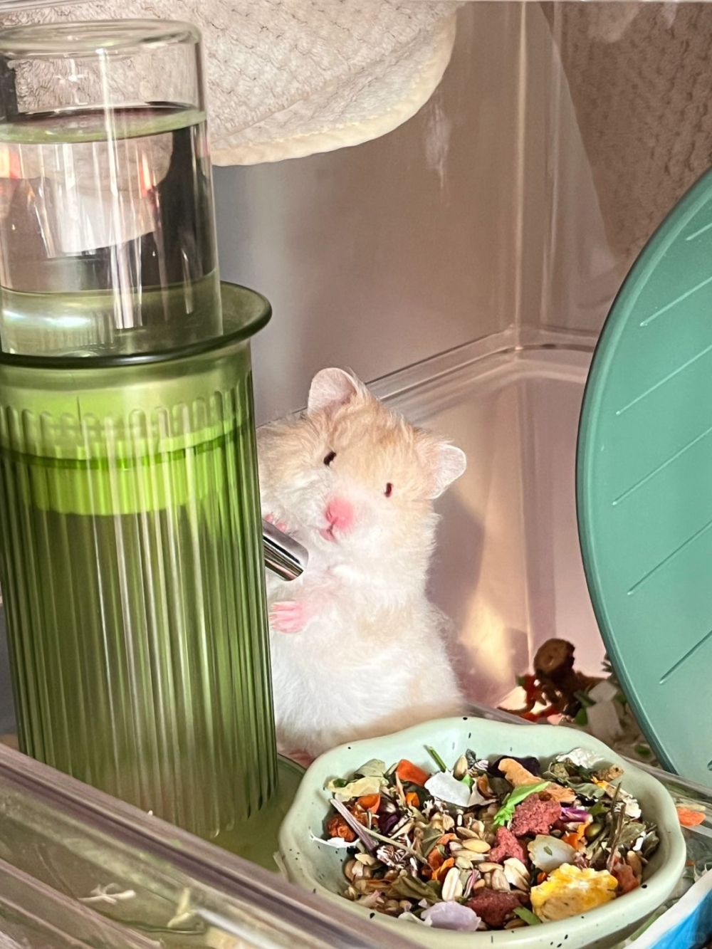 除了食物之外,水也是倉鼠健康的關鍵所在!確保給你的倉鼠提供新鮮的水源,並定期更換喝水瓶中的水~