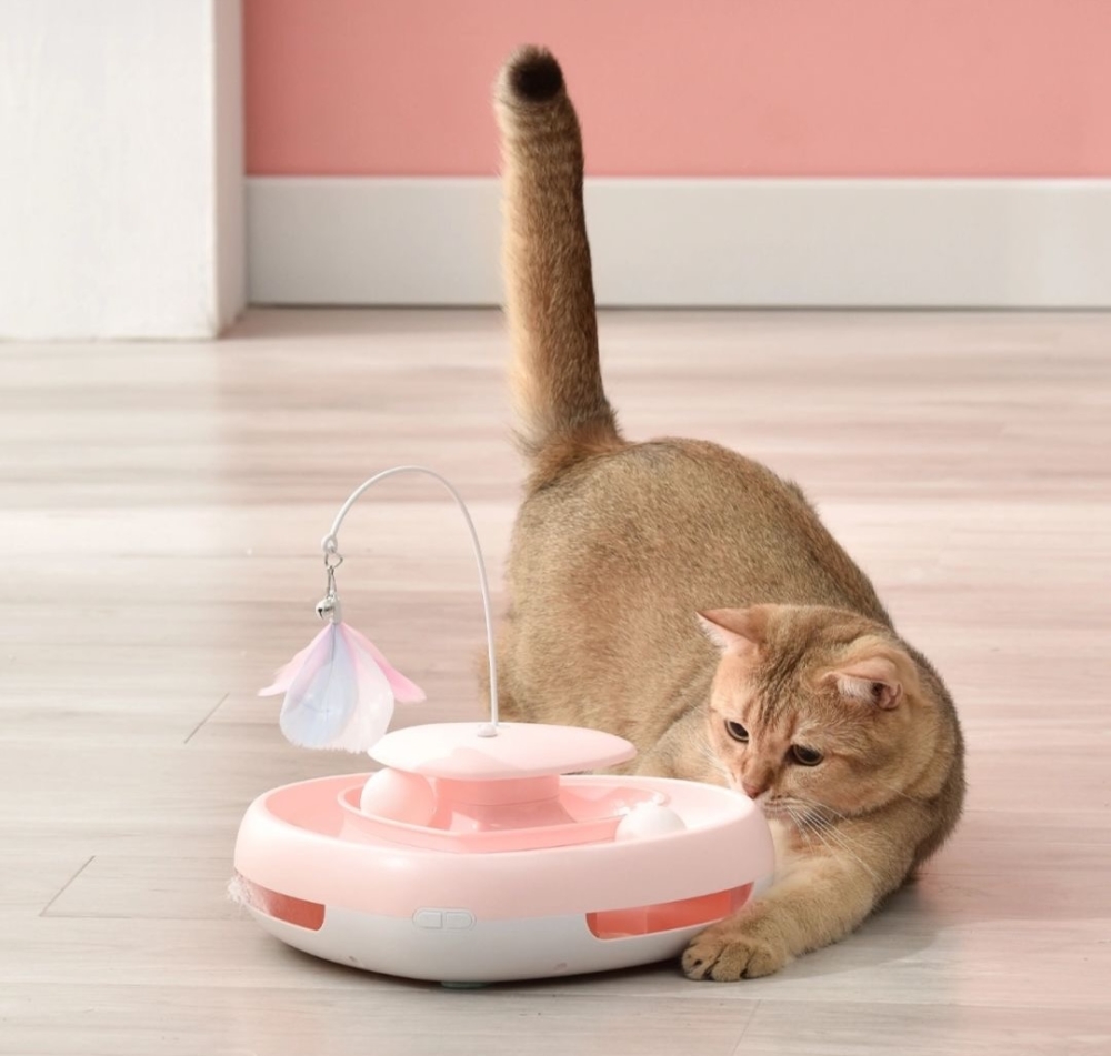 這種球形玩具內置感應器,能夠自動在地板上滾動,偶爾還會改變方向,模仿小動物的移動軌跡!這不僅能激發貓咪的狩獵本能,也能為室內的貓提供足夠的體力消耗~