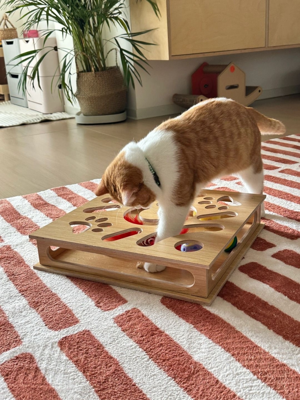 這些玩具通常需要貓咪使用爪子和智慧去解開謎題,從而獲得小食或玩具~這類玩具不僅刺激貓咪的身體活動,還能鍛煉其腦力!