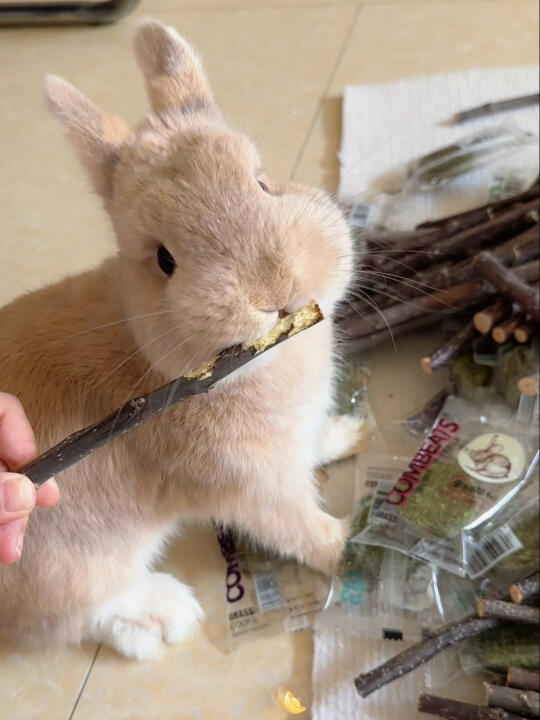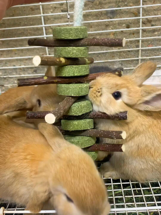 在野生環境中,兔子通過咀嚼樹皮、草根等堅硬食物來自然磨耗牙齒!飼養的兔子則需要提供足夠的纖維食物,如乾草、蔬菜和適當的樹枝來幫助磨牙~不同種類的乾草(如提摩西草)和特別設計的兔子玩具,也可以有效地幫助兔子磨牙!