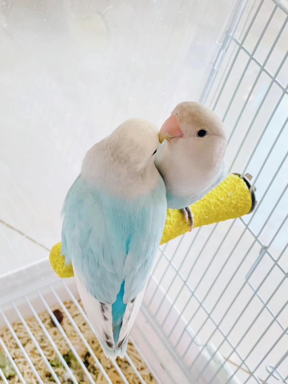 雄鳥和雌鳥一旦配對成功,便會終生相依相偎,不再接受其他配偶!牠們經常緊靠在一起,無論是吃飯還是休息都形影不離,並且時常表現出親吻等親密舉動~這種長久而專一的感情,使得牡丹鹦鹉成為愛情象徵的代表!
