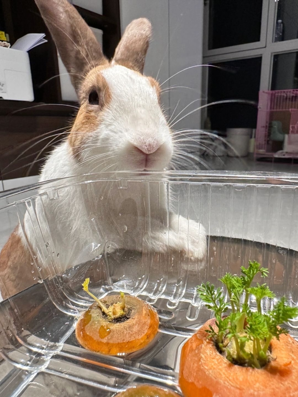 紅蘿蔔屬於偏冷的食物,特別是6個月以下的兔寶寶,由於腸胃發育未全,不適合食用~成年的兔子雖然可以少量食用,但也需控制量,否則容易引起腹瀉、脫水等問題!其他像番薯和馬鈴薯等根莖類食物同樣不宜多吃~