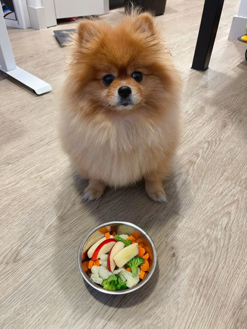 訂下進食計劃:每天餵食的熱量應相當於維持目標體重所需的40%,並將食物分成兩到三小份,減輕狗狗的飢餓感,讓每頓食物充分消耗掉~