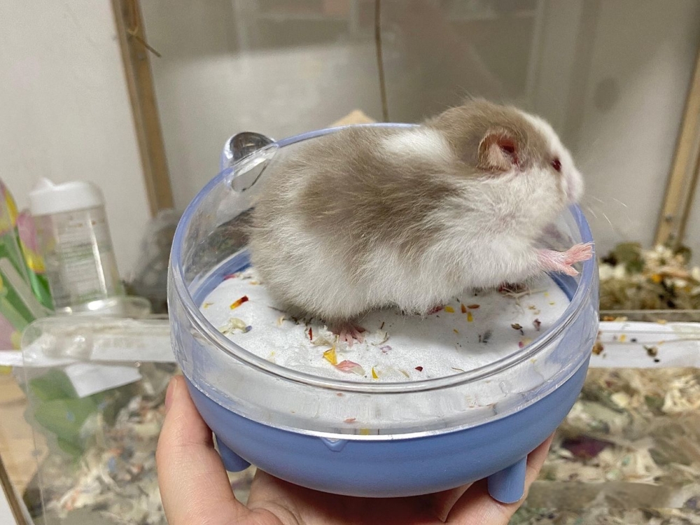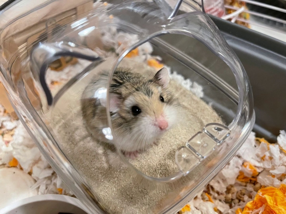 有些倉鼠可能一開始不會使用沐浴沙。這時可以嘗試將少量小食物埋在沙子裡,吸引倉鼠挖掘和探索~此外,可以輕輕地將少量沙子撒在倉鼠身上(注意避開臉部、眼睛和耳朵),幫助其適應!如果倉鼠仍然不會使用沐浴沙,可以考慮更換沙子或沙盒~
