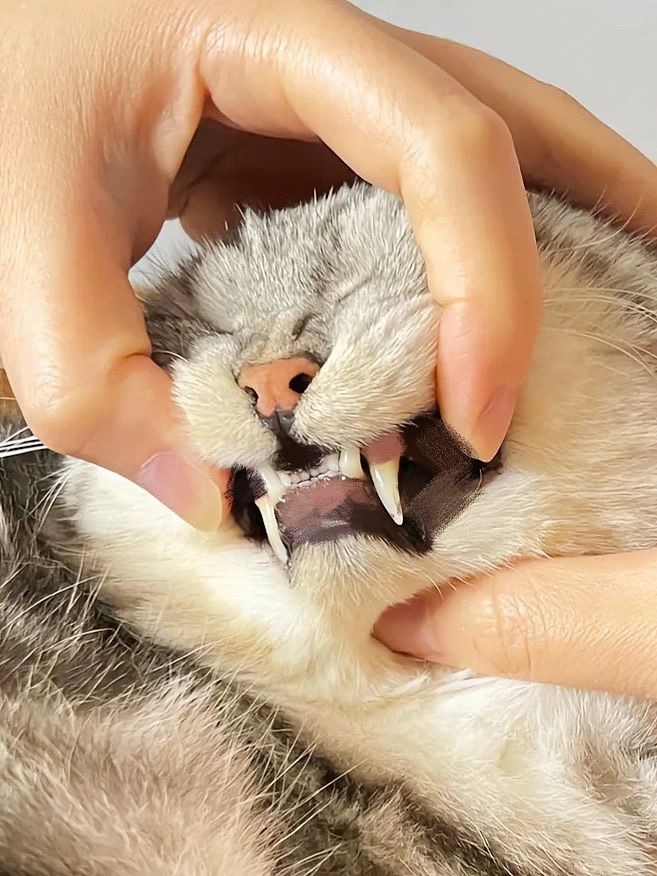 2. 逐步增加刷牙範圍:隨著貓咪逐漸習慣牙刷,可以逐漸增加刷牙的範圍,最終覆蓋整個牙齒和牙齦區域~刷牙的重點應該放在貓咪的犬齒和臼齒,這些部位最容易積聚牙菌斑和牙垢!