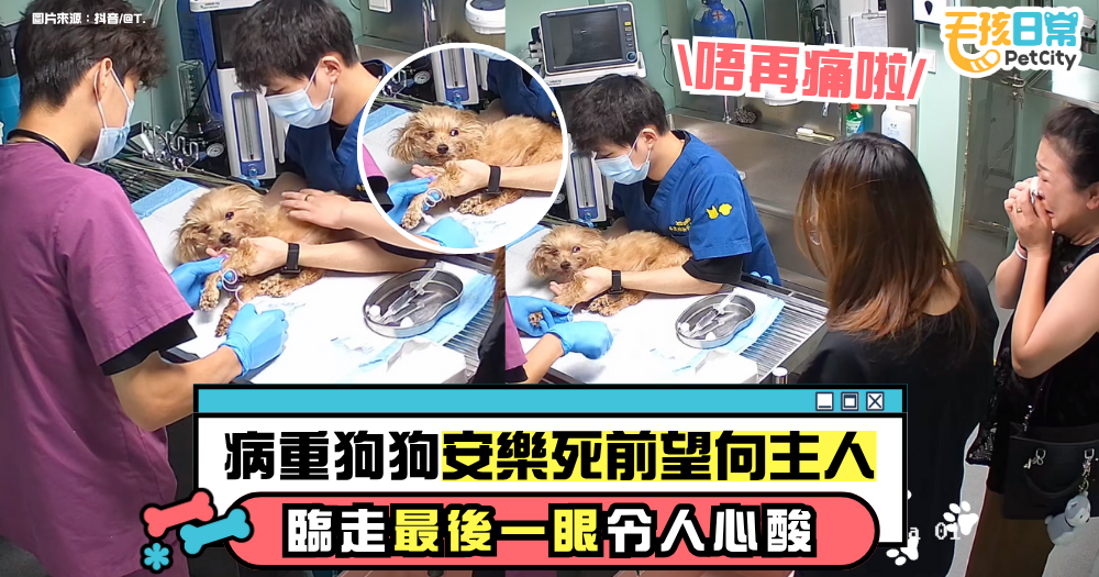 房間裡安靜得只剩下呼吸聲。女士湊在狗狗耳邊,低聲呢喃:「多吉,不怕了,很快就不疼了。」