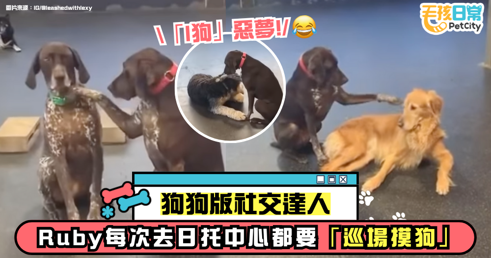 你見過一隻喜歡「摸別的狗」的狗狗嗎?那就是 Ruby!這位可愛的社交高手,每天去日托中心都像去開派對。當別的狗忙著追球、搶玩具、打滾時,Ruby 已經開啟她的「交朋友任務模式」——四處巡邏、打招呼、摸摸頭,一刻也閒不下來。