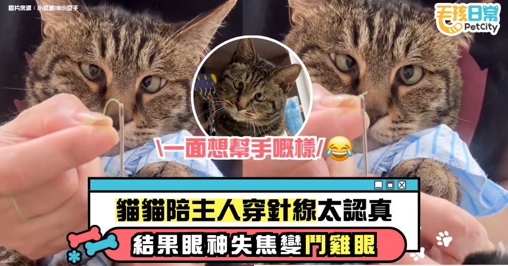 貓咪陪主人穿針線太認真 結果眼神失焦變鬥雞眼【有片】