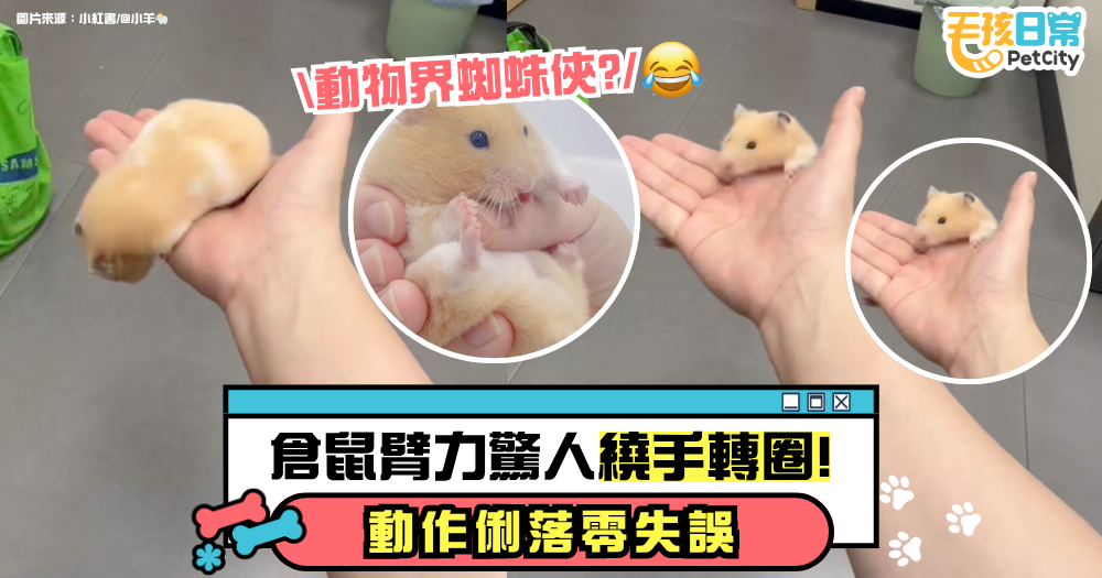 影片一出,網民都笑翻:「這臂力比我健身三年還猛!」、「請收下我的膝蓋,小倉鼠真的太穩了!」雖然畫面可愛,但也提醒飼主們,看似輕盈的小動物其實力氣驚人,但玩這種「高難度」互動還是要小心,畢竟倉鼠那麼小,一個不穩可不是開玩笑的~